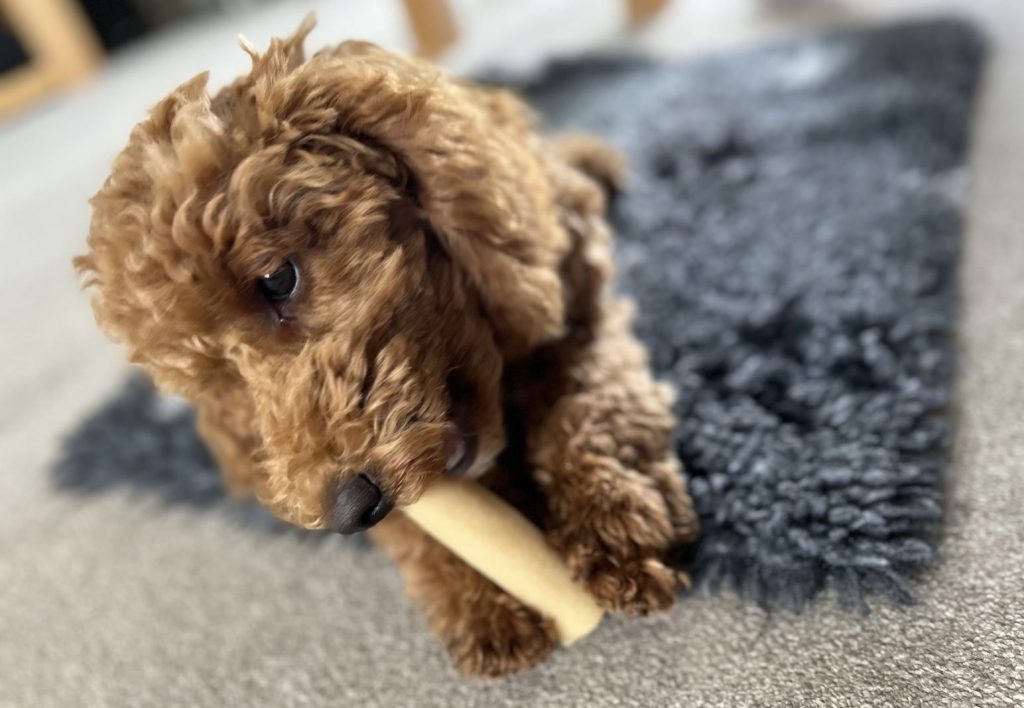 Puppies have 28 baby teeth, these are known as ‘milk teeth’, and sharp like needles. Puppies baby teeth start to fall out from 16 weeks up until they are around 5/6 months of age. Baby teeth are replaced with ’48 adult teeth’. Puppies become bitey when they are hungry, tired or when they are over stimulated (excited). Why not try giving your puppy a Himalayan YAK dog chew, a natural product made from 100% Yak cow milk.